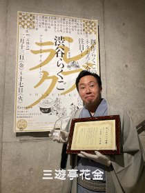 当協会所属の柳亭信楽(柳亭楽輔門下:二ツ目)が「渋谷らくご大賞2025(おもしろい二つ目賞)」を、三遊亭花金(三遊亭笑遊門下:二ツ目)が「渋谷らくご2025「楽しみな二ツ目賞」」を受賞いたしました(共には主催:ユーロライブ)。 今後が更に期待される両名の活躍を引き続きどうぞご期待ください。
